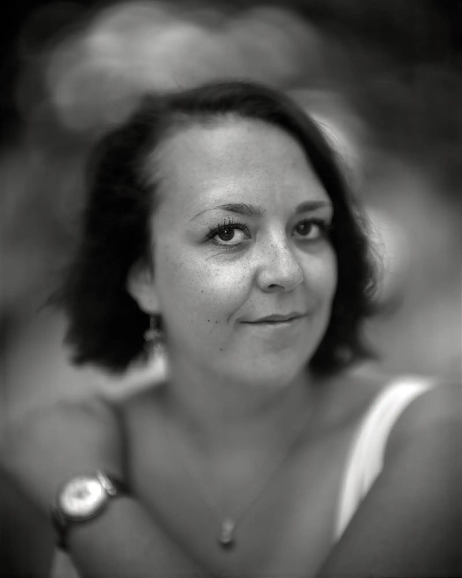 • Hloubka ostrosti: neboli DoF (Depth of Field) je takové dvojbřité ostří. Čím menší, tím oku lahodnější a více plastické, ale zároveň těžší na kritické zaostření. Pokud fotíte něco statického, záleží jen na vás, jestli máte oko jako z Kašparovy krávy — spílat můžete jen sami sobě. U lidí se však i ten sebevíce disciplinovaný model bez použití chloroformu semo-tamo zavrtí a u světelnosti třeba f3, jako má Schnellarbeiter, jde bez přehánení o milimetry. Takže máte zaostřeno na oko, zlomyslná osoba se nevědomky hne a tramtadá, máte fotku zaostřenou někam na čelo nebo bradu. Anebo to trefíte, oči jsou ostré, ale vše ostatní je až příliš rozpité. Na to je extra náchylný vyčnívající nos, protože s malým DoF může působit jako rozmáznutý blob v jinak ostrém obličeji.
