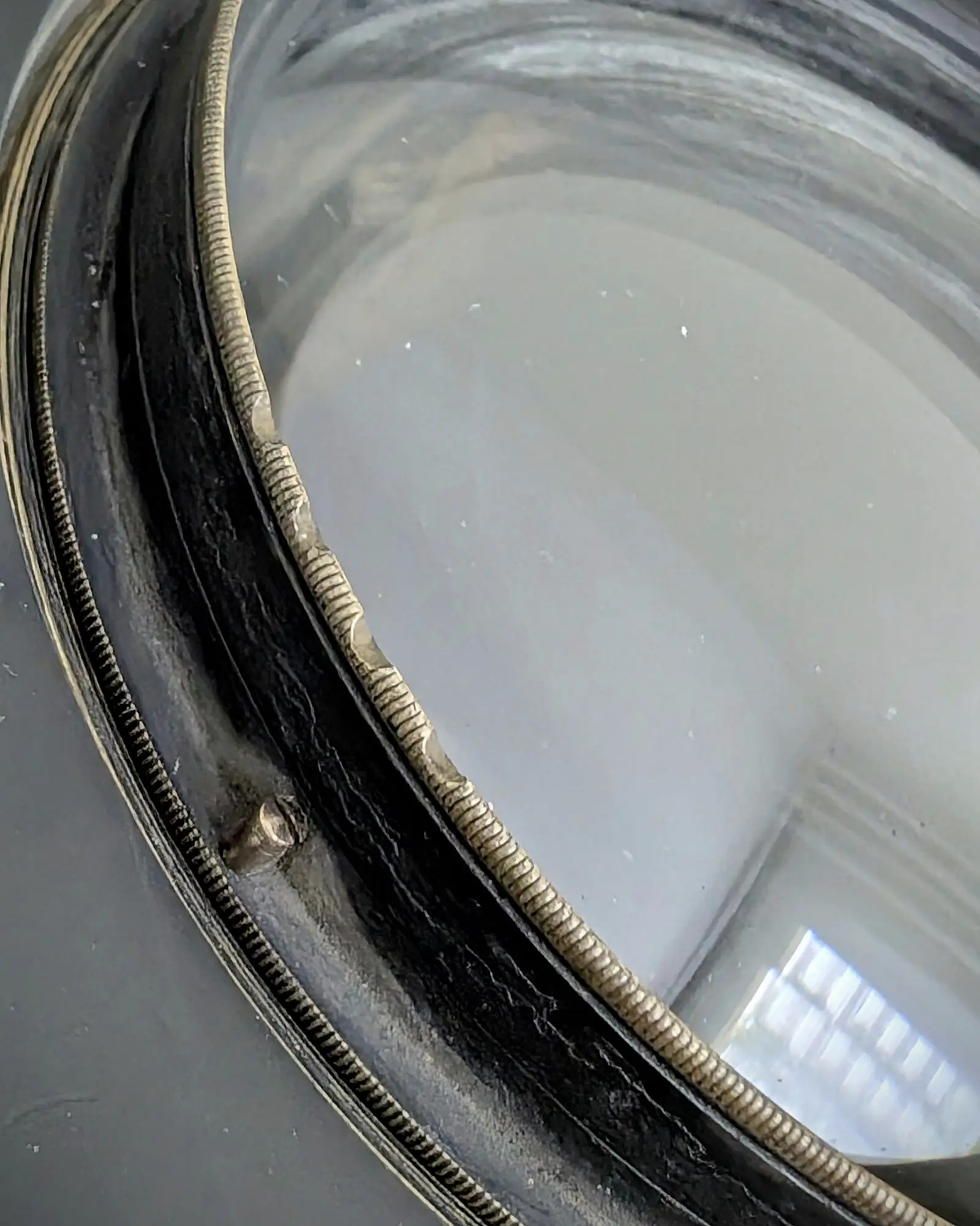 Detail typických Dallmeyer zářezů a kolíčku pro nastavení SF
