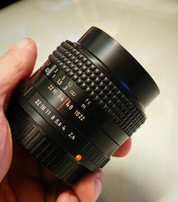 (21. 3. 2026 8:05)Výborné sklíčko v modernějším hávu, s bajonetem PB. Opticky totožný jako Flektogon 35/2.4 pro m42. Perfektní stav, po udržovacím servisu, optika i mechanika bez vad. Žádné plísně, škrábance…